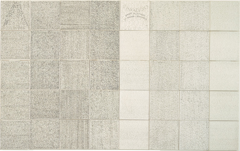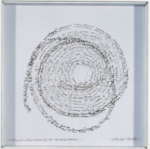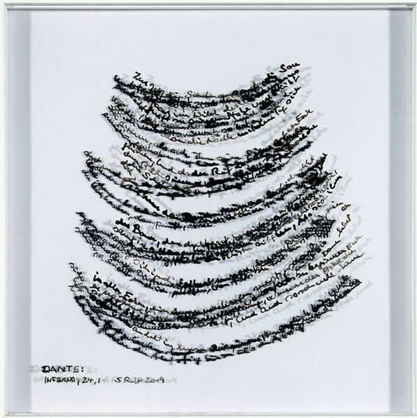 Es entstehen Schrifttafeln, die festhalten, demonstrieren, vorführen. Ich gerate in den Bann der 700 Jahre alten Commedia von Alighieri Dante, die häufig zitiert wird (die Höllenkreise), um auf stets vorhandene menschliche Schwächen und Fehler hinzuweisen. Es entsteht ein nicht endenwollendes Projekt, an dem ich seit über zehn Jahren arbeite.