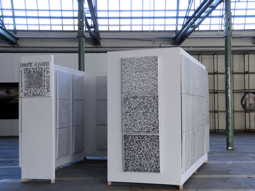 Dante Schriftrollen, je 98x220cm, doppelseitig beschrieben, Papier, PVC, 2006/2007